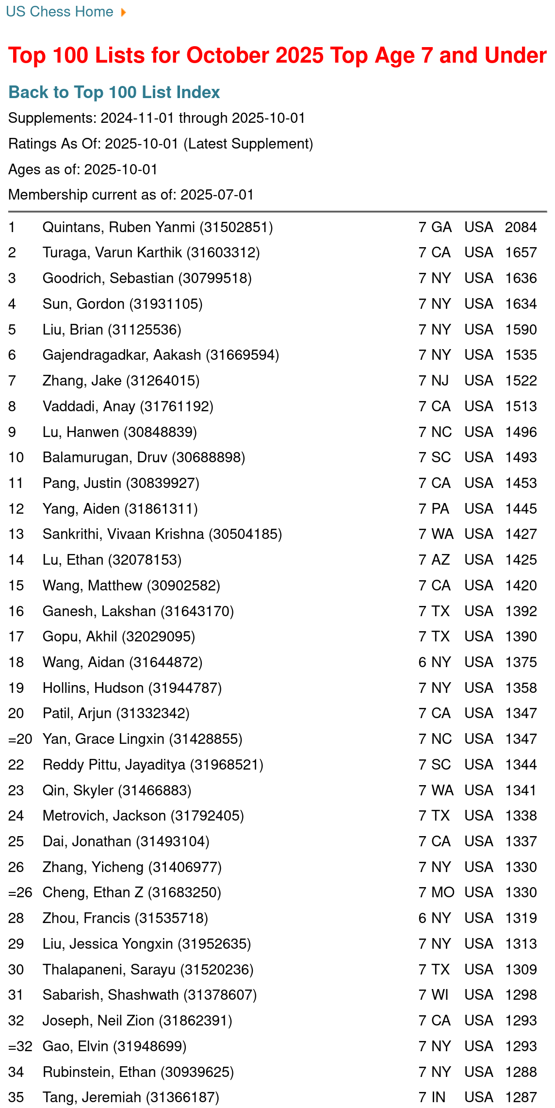 35th, Top Age 7 and Under, Oct 2025 [